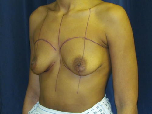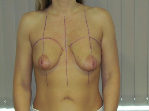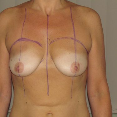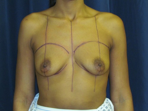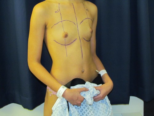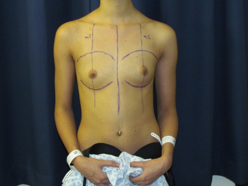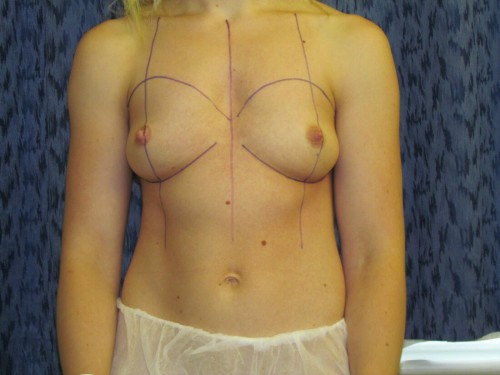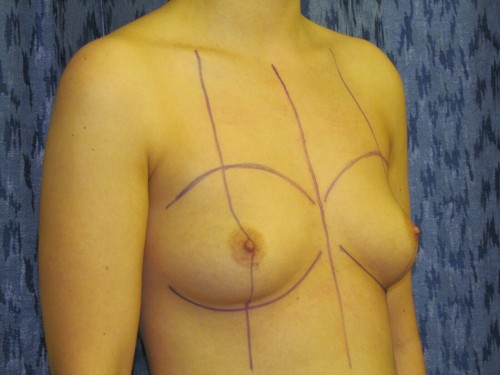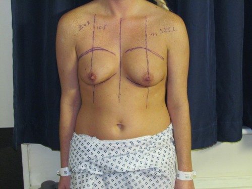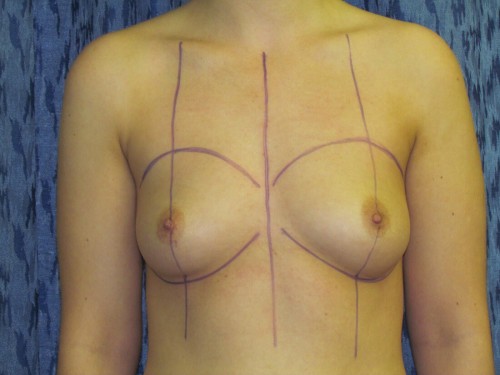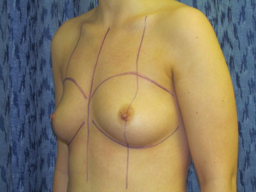 Implant size and type: 325cc left breast; 350cc right breast; round silicon textured implants; moderate projection
