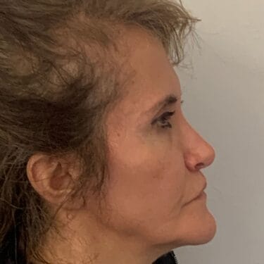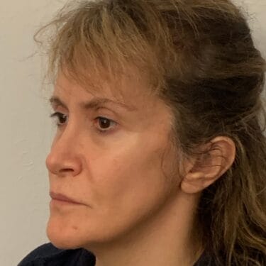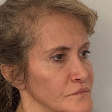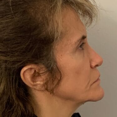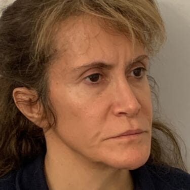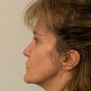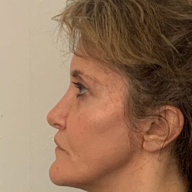 This 53 year old lady visited Dr Ivo’s Office in Harley Street because she did not like the flatness of her cheeks as well as the long appearance of her upper lip. It was decided that a liplift and insertion of cheek implants would the best way to correct the situation. As such, a liplift with insertion of bilateral cheek implants were performed