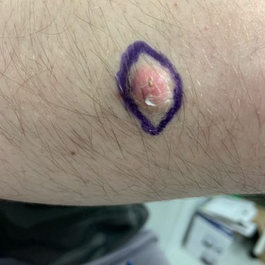 The wound is closed with a non-absorbable stitch