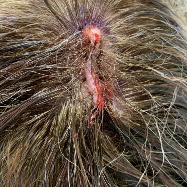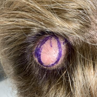 Removal of a sebaceous cyst from the scalp in a patient